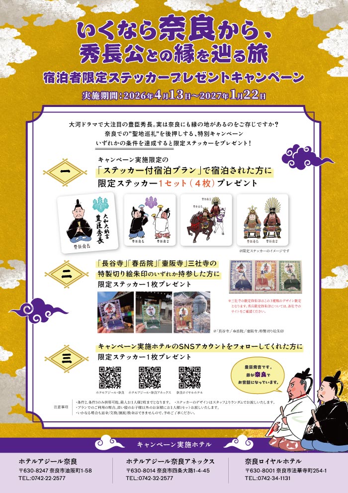 奈良からはじめる秀長公との縁を辿る旅 宿泊者限定ステッカープレゼントキャンペーン