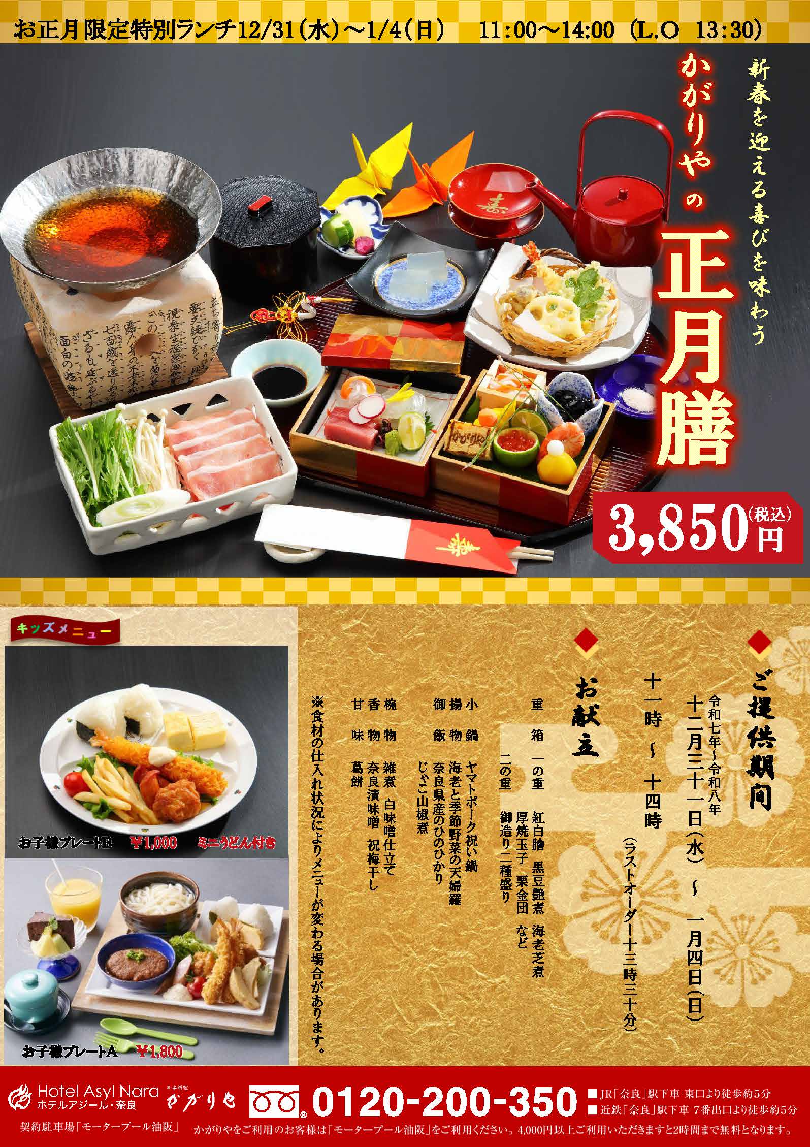 ホテルアジール・奈良では、12月31日~1月4日にご利用いただける「お正月限定特別ランチ」をご用意しております。